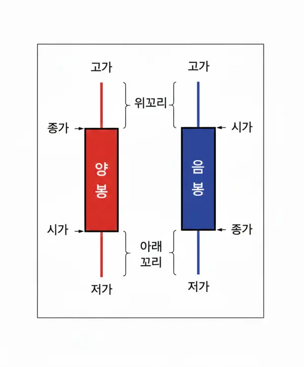 지금부터 양봉과 음봉의 기본 개념부터 꼬리가 의미하는 것, 그리고 실전에서 이를 어떻게 해석해야 하는지 핵심적인 내용 위주로 살펴보도록 하겠습니다.